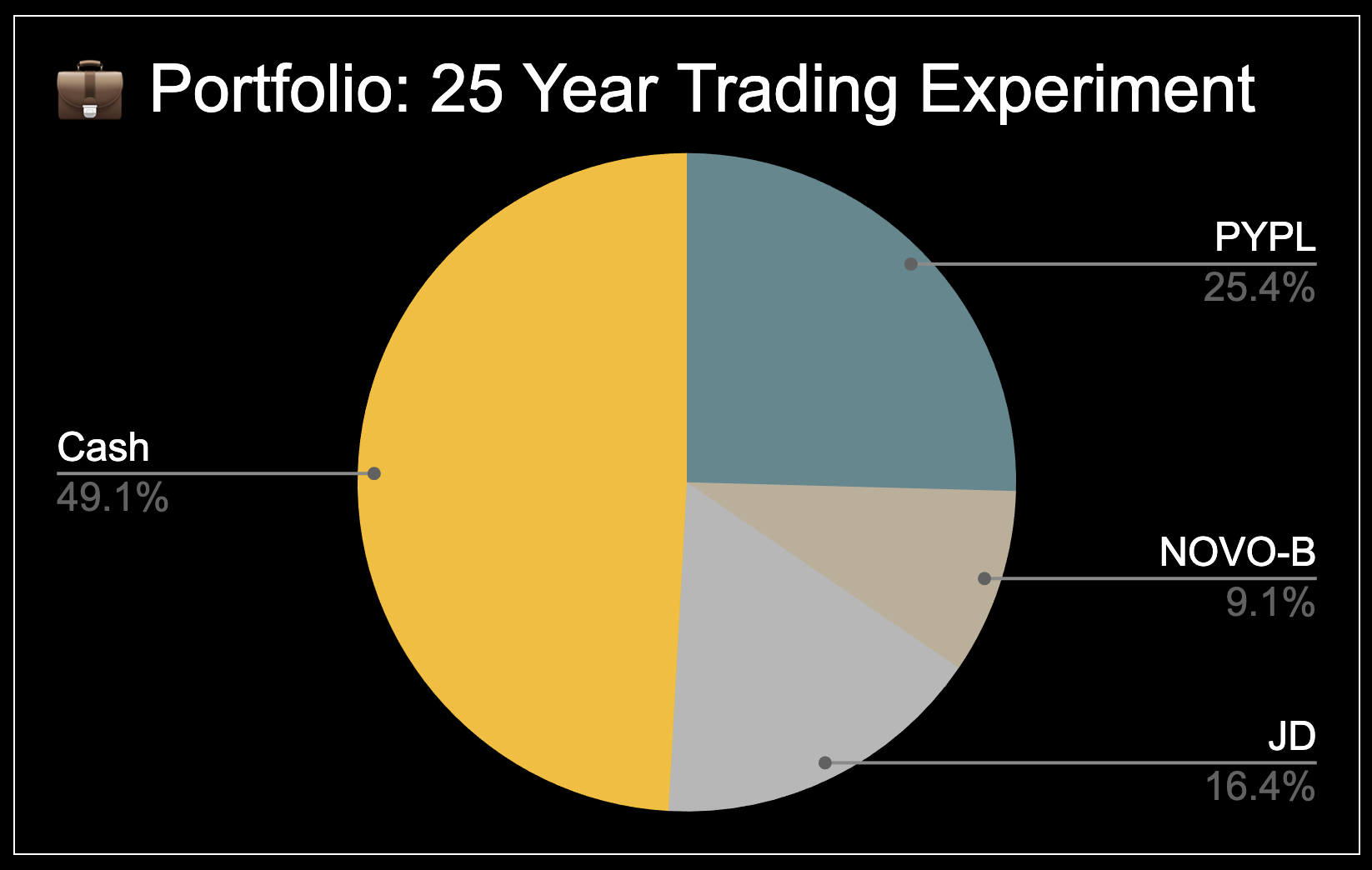 The portfolio currently consists of 3 open positions: $PYPL, $NOVO and $JD.