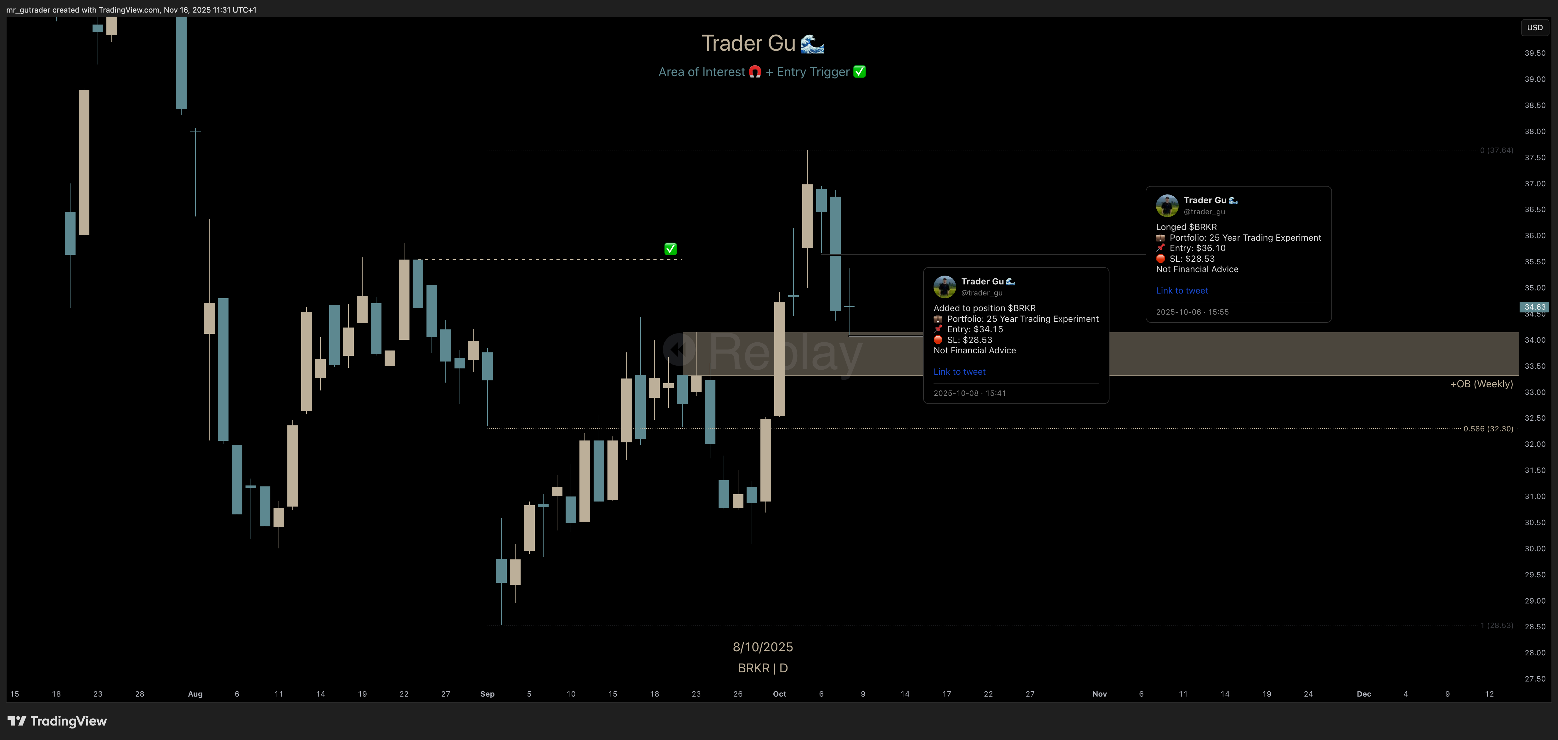 The technical chart for $BRKR was one of the most interesting I saw all year. Although I am satisfied and believe I executed the trade well, capturing significant profits, I am slightly concerned that I exited too early instead of holding toward my higher time frame target at 54 dollars. Time will tell whether it was the right decision.